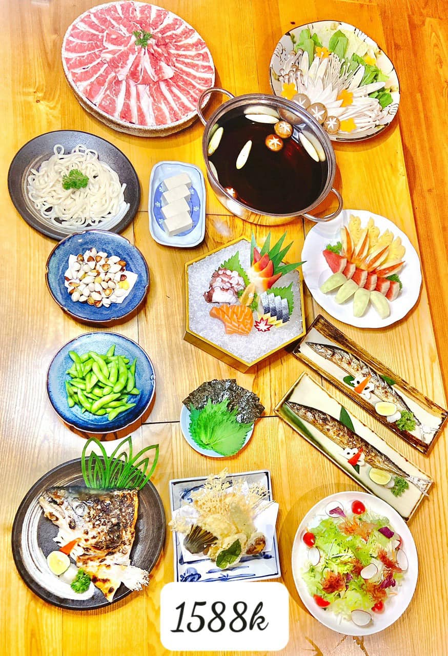 Thực đơn chuẩn vị Nhật Bản có hơn 150 món do chính tay đầu bếp giàu kinh nghiệm lựa chọn, được dọn lên theo trình tự sup khai vị, món nướng, món măng, món nước, món canh, lẩu, chè và trái cây tráng miện để thực khách thưởng thức trọn vẹn tất cả cả các loại món mà không cảm thấy quá no, thay vào đó chỉ còn lại hương vị thơm ngon cùng chất dinh dưỡng đặc biệt trong từng món ăn sẽ làm cho thực khách nhớ mãi